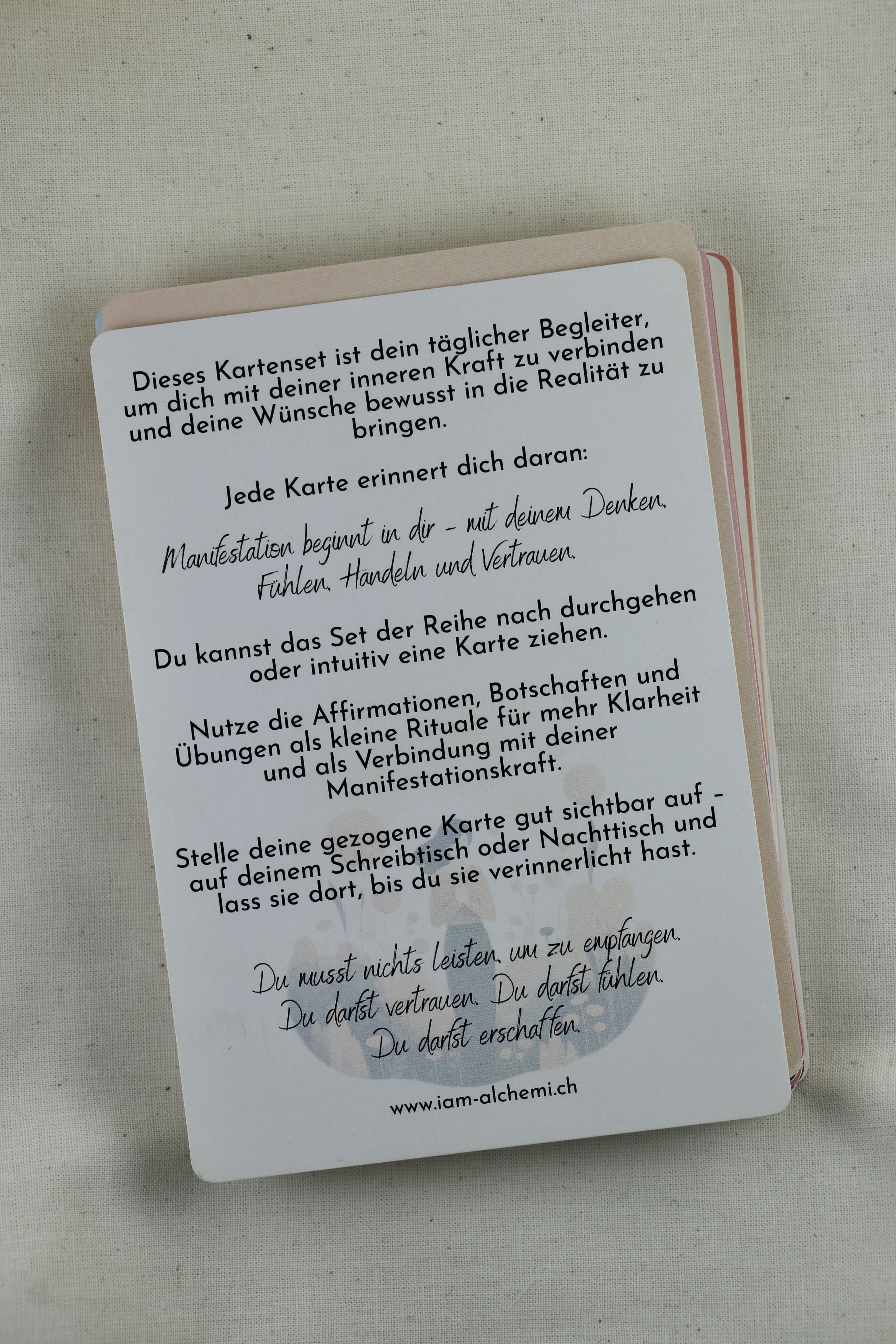 Entdecke ein Manifestation Kartenset, das deine Routinen inspiriert und deinen Alltag pur, authentisch und zeitlos ergänzt – gestaltet von I AM alchemi.