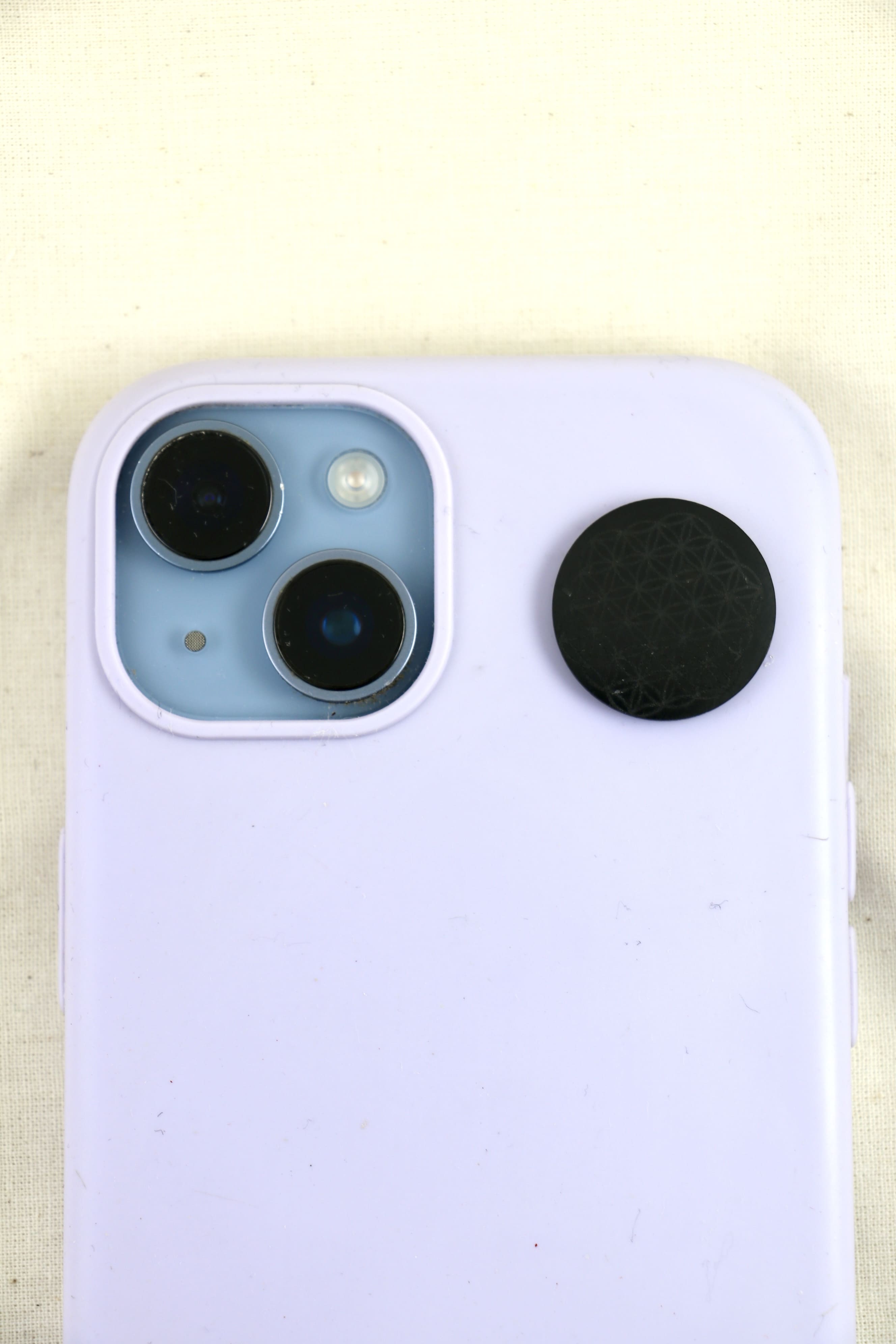 Du kannst das Plättchen direkt auf dein Handy, deinen Laptop oder andere Geräte kleben.